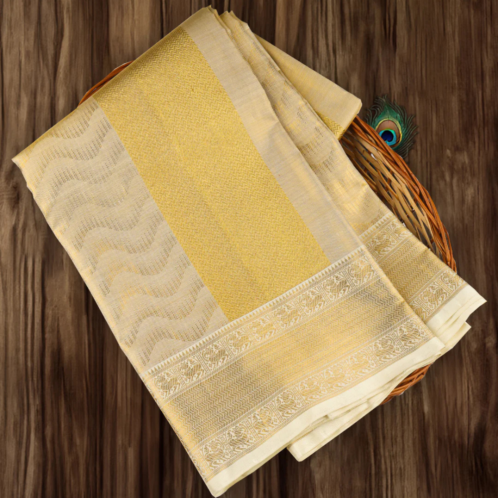 The minimal yet sophisticated patterns along the border enhance its traditional charm, making it a perfect choice for Onam, Vishu, weddings, temple visits, festive gatherings, and cultural celebrations. Pair it with a contrasting blouse and traditional jewelry to complete a refined ethnic look.